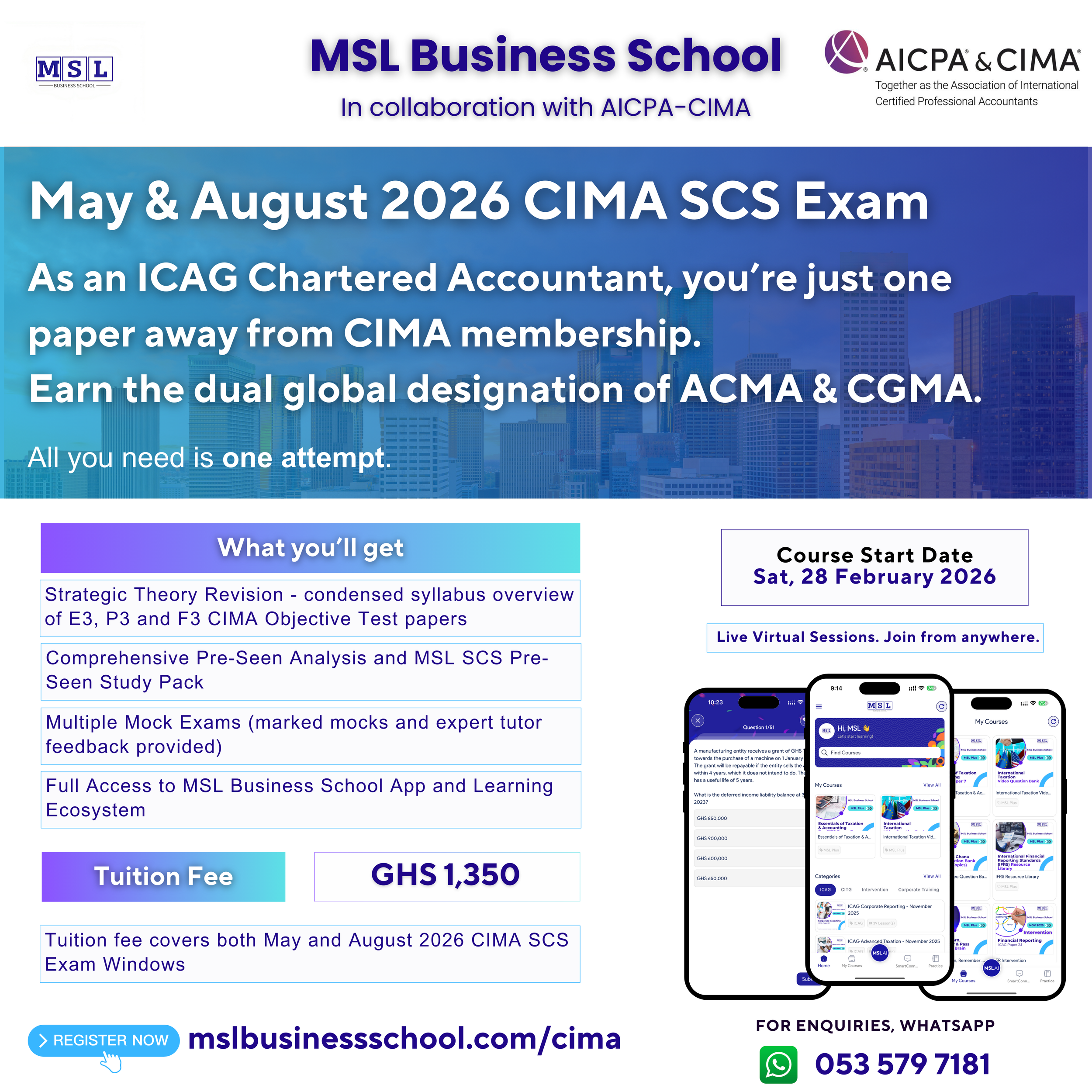 MSL Business School CIMA ProgramRegistration is ongoing for the May and August 2026 CIMA SCS Exam Welcome to Excellence. Welcome to World Class. Click HERE to Register Click HERE to Register